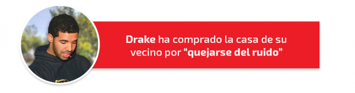 ¿Hay algo más swagger que esto? Difícilmente. Drake ya avisó en su tema con Future ‘Where Ya At’, “compraré la casa del vecino si se queja del ruido”. Pues aunque no se revelaron los motivos, el de Toronto acabó comprando la casa de su vecino por 2,85 millones de dólares. 413 m², cuatro dormitorios o cinco lavabos justifican el precio. A Drake no le importa soltar la pasta si con ello se asegura continuar con sus fiestas.