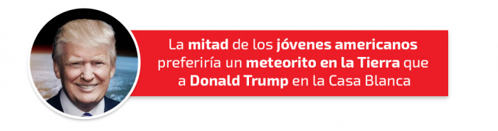 Donald Trump es sin duda el nombre propio del 2016 y para muchos la peor noticia de este año. Pero eso no significa que todas las noticias sobre Trump sean negativas. Un estudio hecho en la Universidad de Massachusetts preguntó a los jóvenes americanos su opinión respecto a los candidatos a la presidencia, y las respuestas fueron de todo menos optimistas. La mitad de los entrevistados preferiría que un meteorito destrozara la Tierra antes que ver a Donald Trump en la Casa Blanca. ¿Tendrán la misma opinión ahora que la victoria del magnate inmobiliario se ha confirmado?