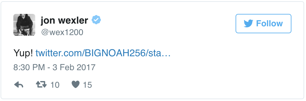 El usuario de Twitter @BIGNOAH256 manifestó la similitud entre ambas marcas dirigiéndose a Jon Wexler, ejecutivo en Adidas, y éste -aunque brevemente- le contestó: