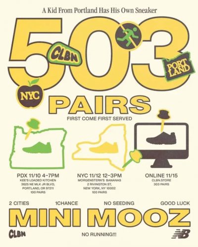 El diseño de las «Mini Mooz» se basa en el modelo New Balance Tokyo Design Studio 610S slip-on. Cada par presenta un efecto de degradado en la zona del empeine y el emblema de plátano característico de Aminé en la parte superior del antepié, creando una combinación de estilo y originalidad que refleja la personalidad única del artista.