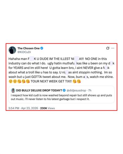 Y es que un tipo utilizó X (lo que siempre ha sido Twitter) para hacer una muy dura afirmación sobre Cudi, la cual fue respondida.