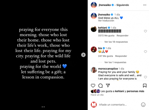 Una de esas personas afectadas es Jhené Aiko, cuya casa ha sido completamente destrozada por el fuego, aunque ella ha reconocido que se siente agradecida de estar a salvo junto a su familia.