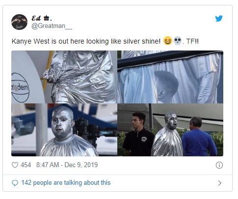 Kanye West impacta al pintarse de plateado para su nueva ópera