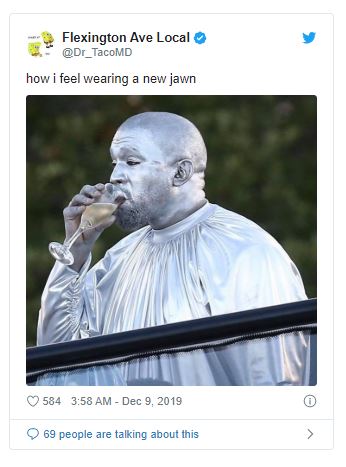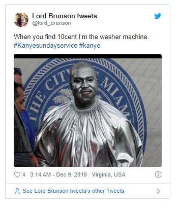 Para esta ocasión, West decidió que lo propio sería que se vistieran con túnicas, pantalones y chanclas plateadas y que se pintaran la cabeza del mismo color.