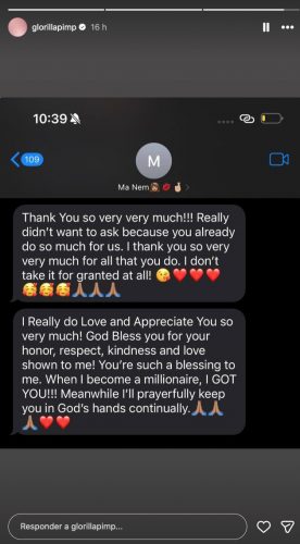 Lejos de responder con ataques, GloRilla ha optado por una respuesta silenciosa pero contundente: compartió capturas de mensajes privados enviados por su madre, en los que expresa un profundo agradecimiento por todo el apoyo recibido por parte de la artista.