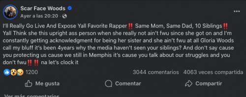 Todo empezó con la hermana de Glo hablando en Facebook , acusando a la rapera de no ayudar a su núcleo familiar y priorizar a sus amistades por encima de su propia sangre.