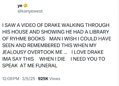 Kanye West (Ye): «Quiero que Drake hable en mi funeral»