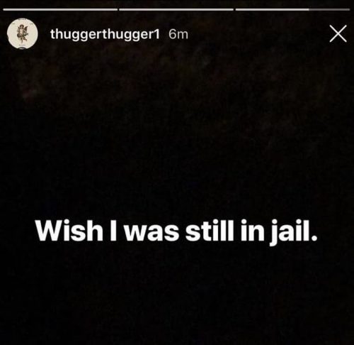 Algo ha ocurrido en los días que han pasado desde su salida de cárcel que ha destrozado a Thugger. El legendario artista ha pasado, radicalmente, de mostrarse alegre a afirmar en una captura que está en depresión. También ha comentado en otra captura que desearía estar en la cárcel de nuevo. ¿Qué te sucede, Thug?