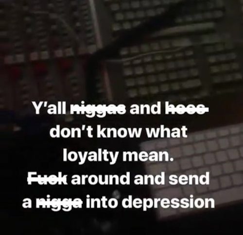 Vosotros, negros y zorras, no sabéis lo que significa la lealtad. Andáis jodiendo y enviáis a un negro a la depresión.